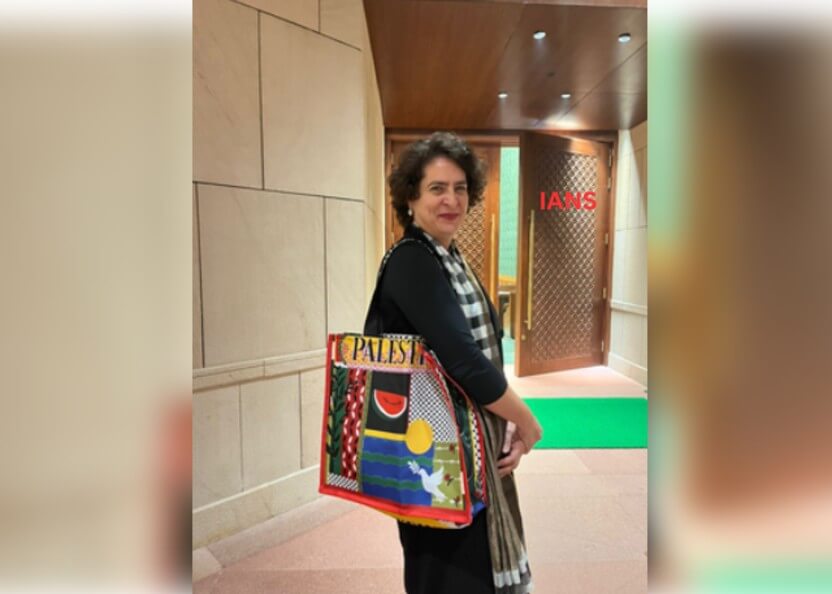 ‘फिलिस्तीन’ लिखा हैंडबैग लेकर संसद पहुंचीं प्रियंका गांधी, फोटो वायरल